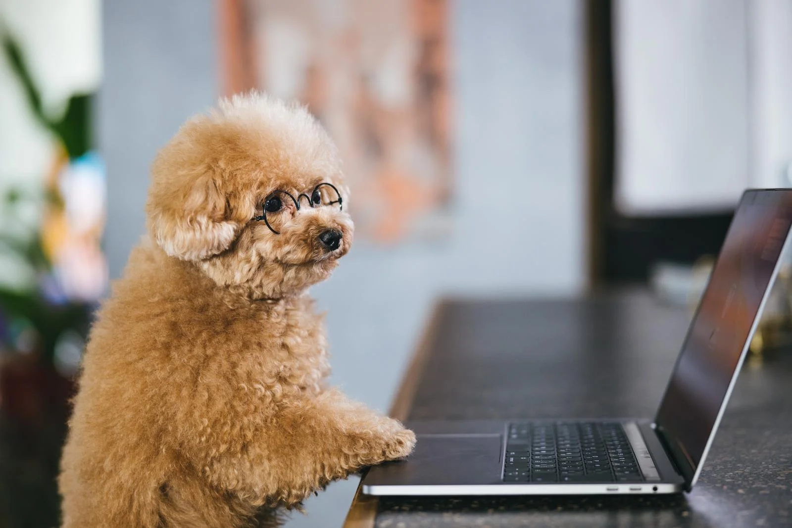 PCを操作するトイプードル