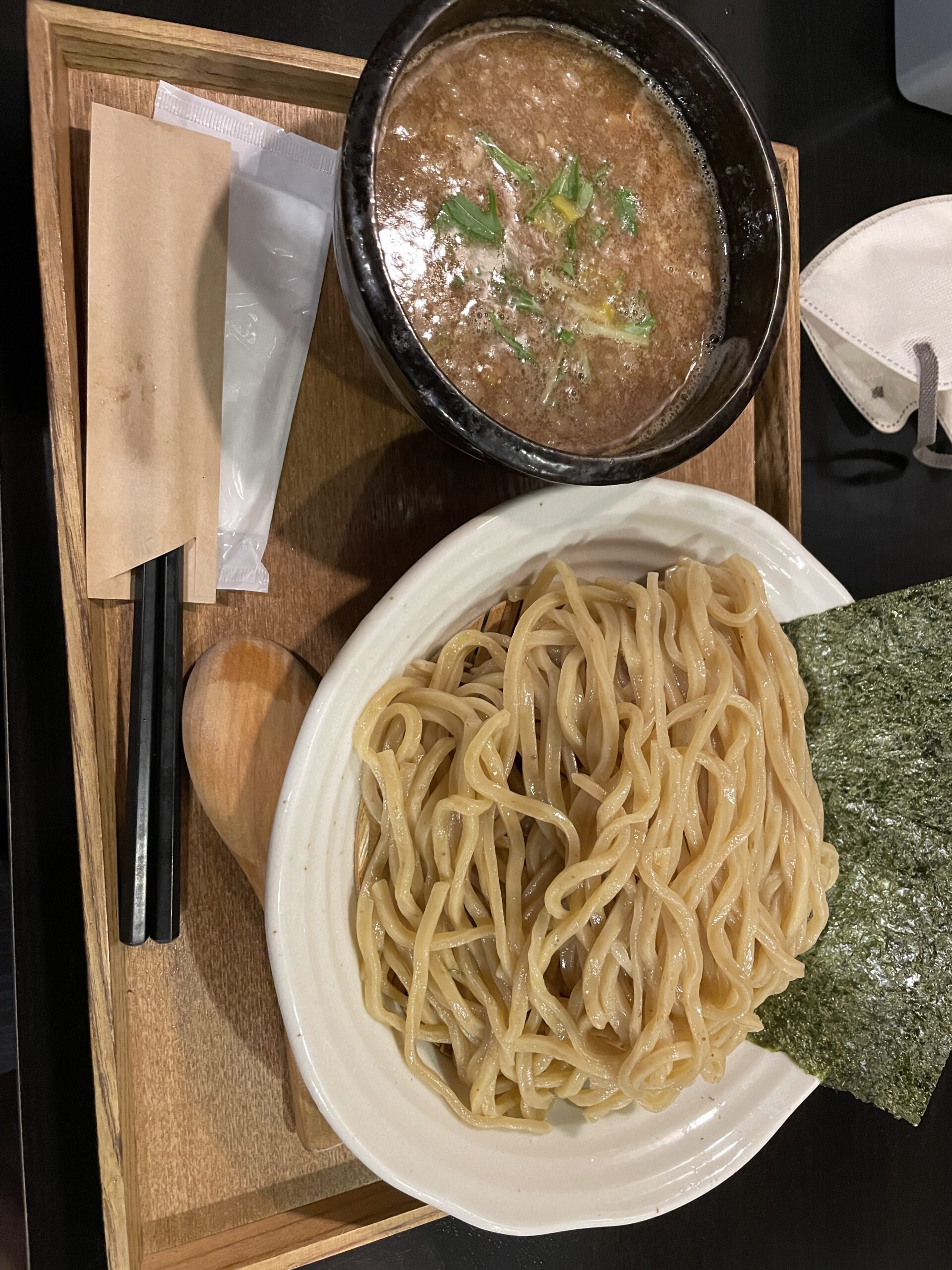 昼食には会社近くでつけ麺をいただきました。空腹だったこともあり大盛りを注文しましたが、想像以上のボリュームで、午後は少し眠気を感じつつも集中して作業に取り組みました。
